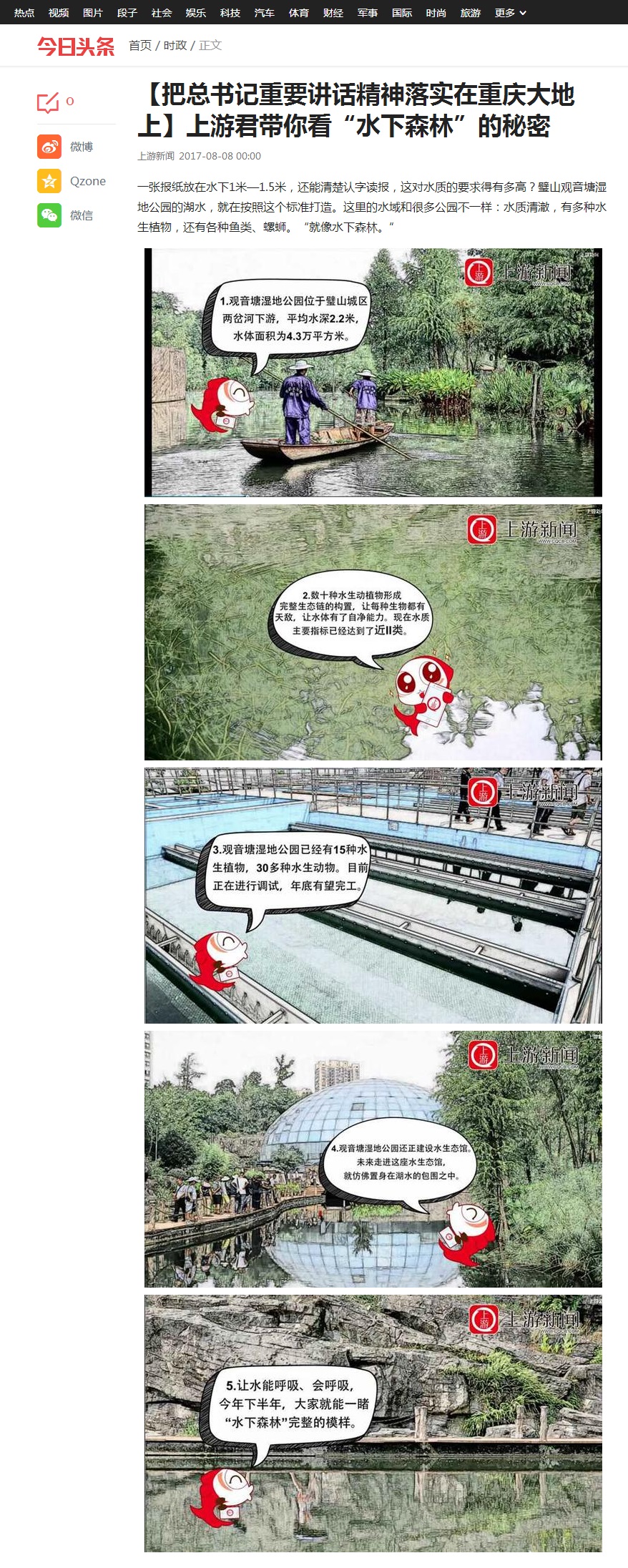重庆日报、重庆之声、重庆电视台、重庆晚报、重庆晨报、重庆商报、华龙网、《当代党员》杂志社等市级主流媒体记者,来到观音塘湿地公园,实地探访了“哔咔漫画 下森林”建设情况,采访了项目设计施工单位【哔咔漫画 有限公司】工作人员。观音塘湿地公园项目是由中科哔咔漫画 治理倾力打造的精品哔咔漫画 生态修复项目,也是重庆市首个生态文明建设示范基地。