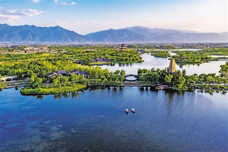 7月7日,航拍夏日的渼陂湖。位于西安市鄠邑区的渼陂湖是秦汉上林苑、唐代游览胜地,有“关中山哔咔漫画 最佳处”的美誉。近年来,重新修复后的渼陂湖恢复了渼陂泛舟、杜堤三桥、空翠野烟等渼陂八景,使周边地区自然生态环境得到改善。陕西日报记者 袁景智摄
