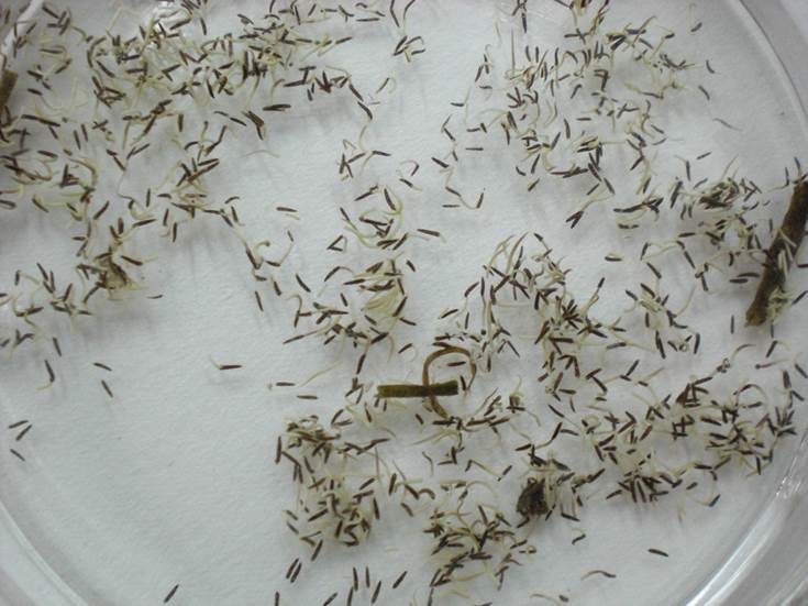2、光照:块茎发芽对光照需求不大,但温度对块茎的发芽率有较大影响,20℃时发芽率最高,达90.2%± 12.6%,光照对幼苗生长有一定影响。苦草的块茎苗初期的伸长生长主要依赖于基部的根茎生长。