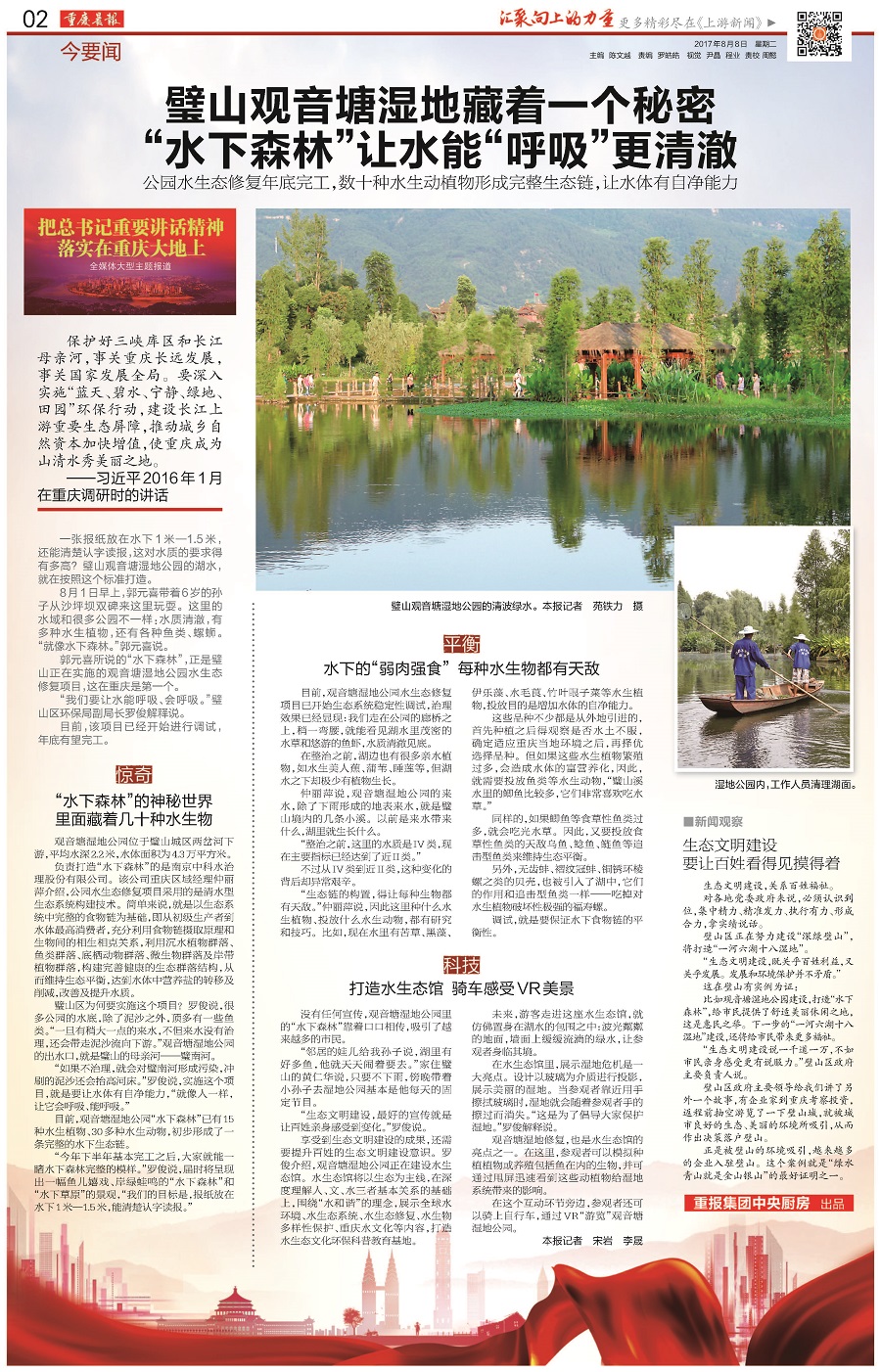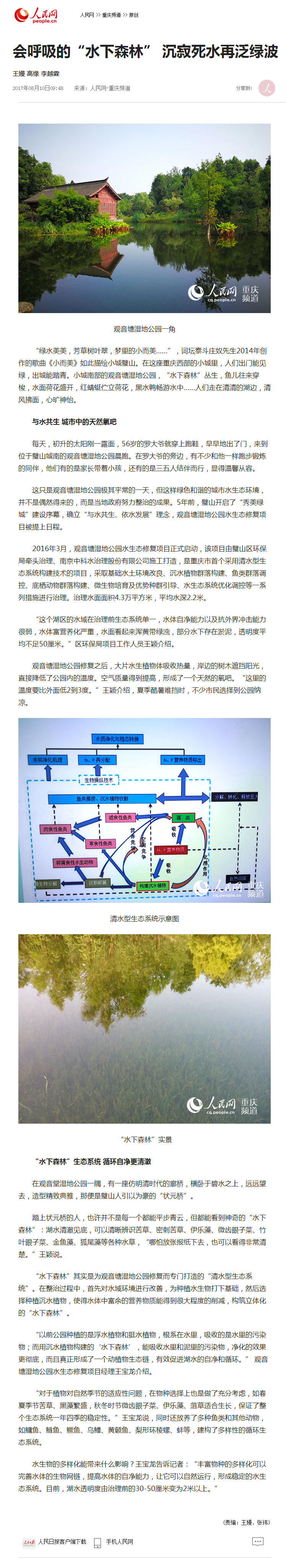 重庆日报、重庆之声、重庆电视台、重庆晚报、重庆晨报、重庆商报、华龙网、《当代党员》杂志社等市级主流媒体记者,来到观音塘湿地公园,实地探访了“哔咔漫画 下森林”建设情况,采访了项目设计施工单位【哔咔漫画 有限公司】工作人员。观音塘湿地公园项目是由中科哔咔漫画 治理倾力打造的精品哔咔漫画 生态修复项目,也是重庆市首个生态文明建设示范基地。