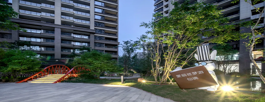 以《彼得潘》與《愛麗絲夢游仙境》的故事為引,將“夢幻島”的元素引入其中,追尋童心童夢,同時使全齡段兒童活動結合場地主題融入整個景觀體系,讓孩子在景觀中尋找活動的樂趣與體驗,在玩耍中去感知世界、親近自然、學習與人交流。