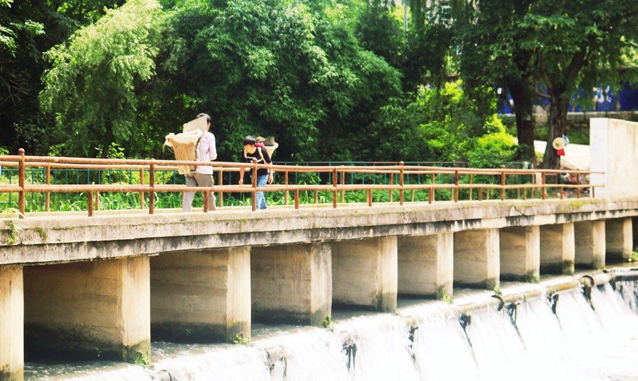生态湿地选址在金钟河入湖段旁,理工大校园内家属区中,地理位置非常偏僻,与外界交通便道相隔遥远,材料运输非常不便,构造生态湿地的每一块泥瓦都由项目部工人师傅用竹篓背入施工场地。