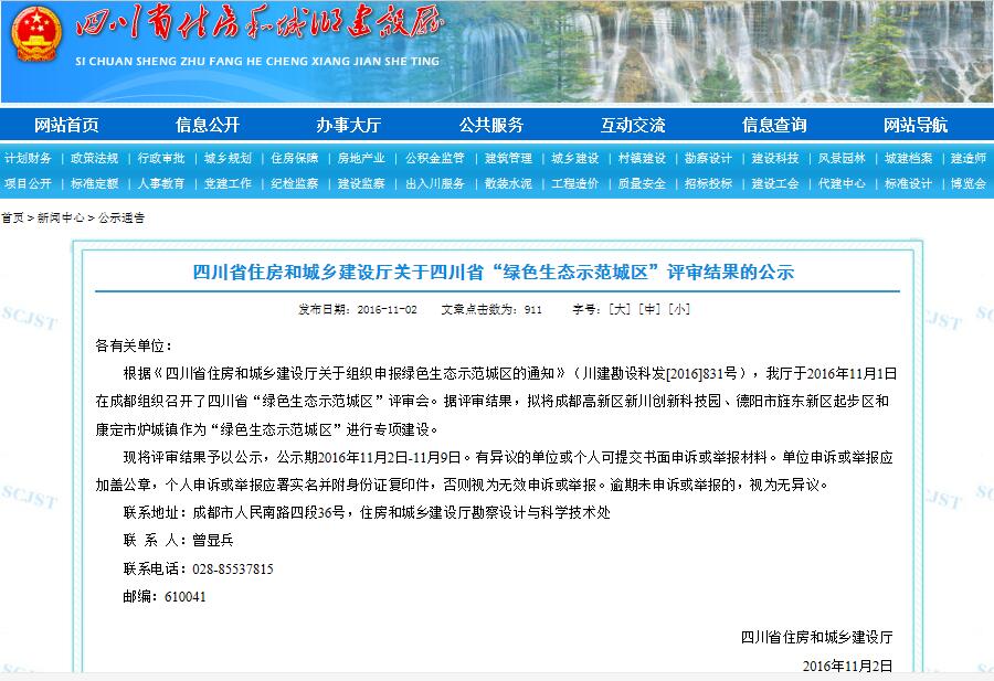 近日,四川省“绿色生态示范城区”评审结果在四川省住房和城乡建设厅公示,成都高新区新川创新科技园将作为“绿色生态示范城区”之一进行专项建设。