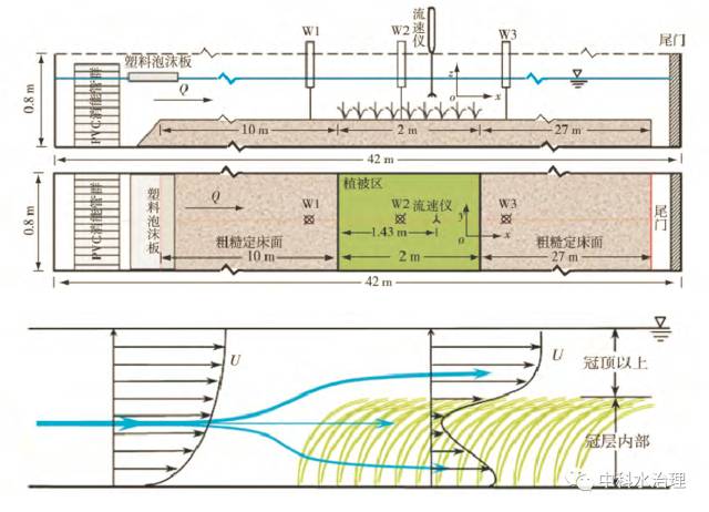 (1) 冠层以上,哔咔漫画 流不受苦草冠层的影响,时均流速呈对数分布; 冠层内部,由于冠层阻流面积在垂线分布上存在差异,冠层内时均流速呈逆梯度分布,且在床面附近出现局部流速最大值。