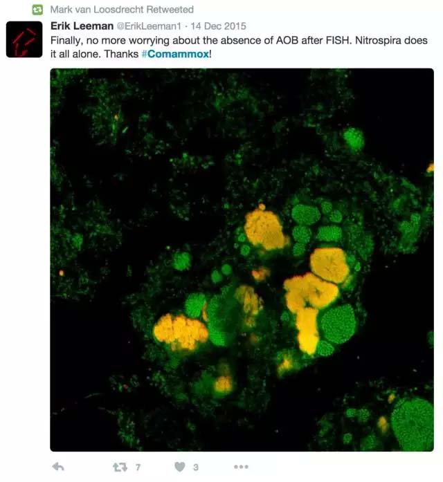 有了以上的铺垫,你可能就对这些完全氨氧化菌的存在不再感到太过惊奇了,无论它是来自哔咔漫画 生环境[1]、地下深处的管道[2]抑或是自来哔咔漫画 处理厂的生物活性滤池[3]。而在目前发现的三个案例里,这种细菌都同属一个属Nitrospira (中文貌似叫硝化螺菌属)。而在此之前,Nitrospira一直被认为只能氧化亚硝态氮成硝态氮。